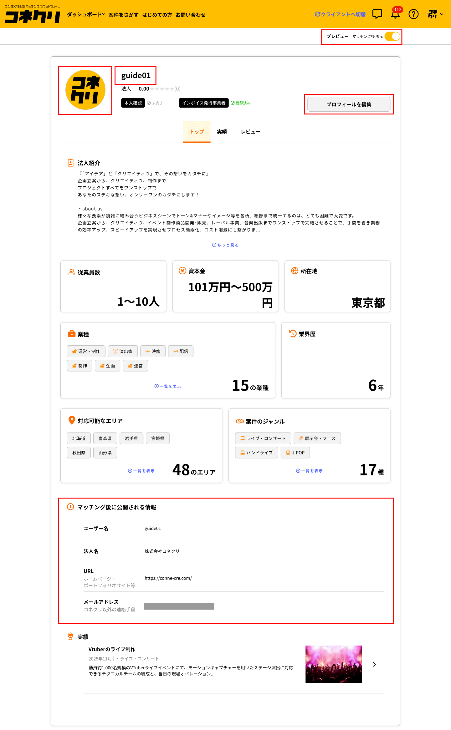 主催者、制作、スタッフ、クリエイターなど、エンターテイメント業界に関わる多彩な人材と、豊富な案件が集まるエンタメに特化したマッチングプラットフォームです。