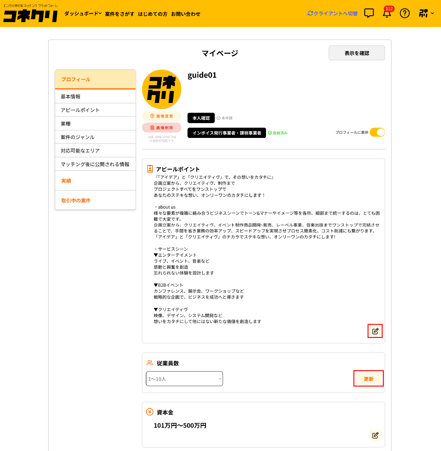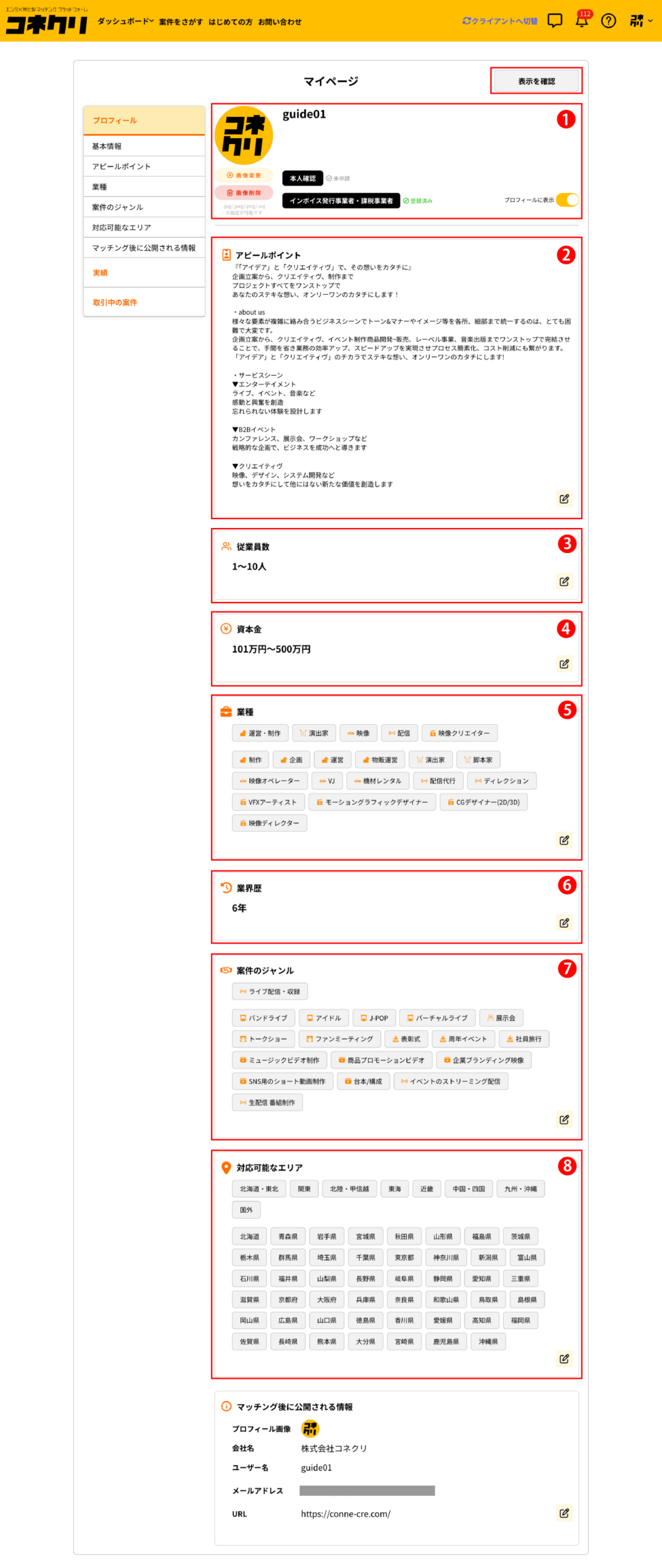 プロフィールは、クライアントが仕事を依頼する相手を判断するための基本情報ページです。